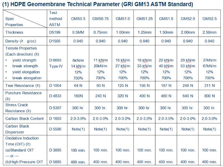 HDPE土工膜的技術(shù)指標(biāo)符合GRI GM13