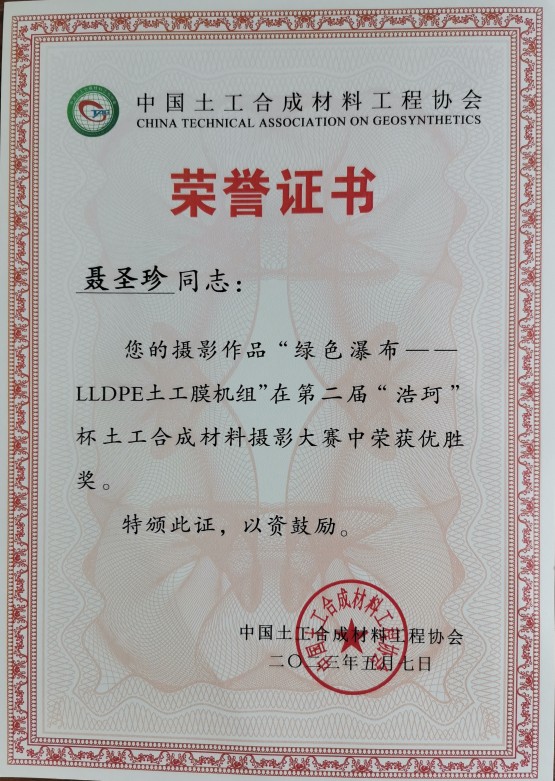 在第二屆“浩珂”杯土工合成材料攝影大賽中榮獲優(yōu)勝獎。
